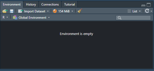 Environment/History (superior direito): Mostra objetos criados e histórico de comandos